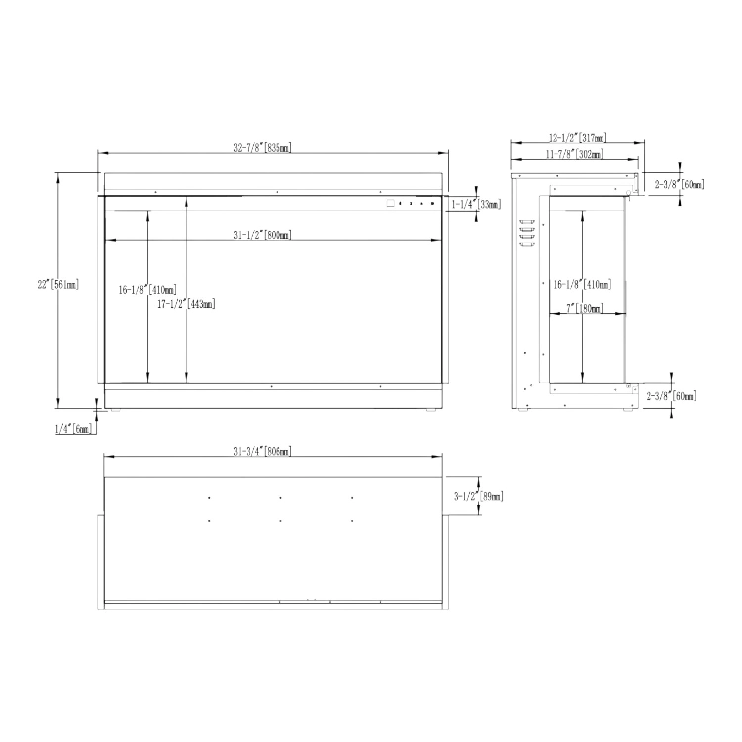 3-seitiger Elektro Einbaukamin
